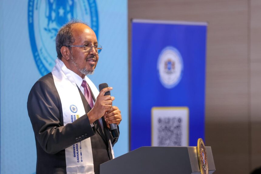 Madaxweynaha Jamhuuriyadda Federaalka Soomaaliya Mudane Xasan Sheekh Maxamuud ayaa maanta soo xiray Shirweynaha 1-aad ee Bahda Cadaaladda Soomaaliya oo lagu soo bandhigay qorsheyaasha qaran ee ku saleysan istiraatijiyada dib-u-habeynta garsoorka dalka, daadejinta adeegga caddaaladda, guulaha la gaaray, caqabadaha ka jira iyo ahmiyadda ay leedahay ilaalinta sareynta sharciga.