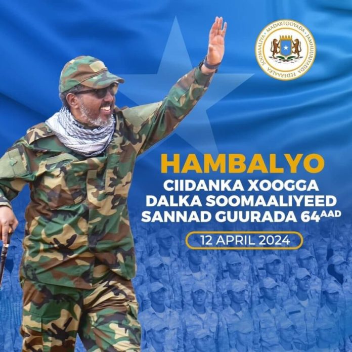 -Madaxweynaha Jamhuuriyadda Federaalka Soomaaliya Mudane Xasan Sheekh Maxamuud ayaa ugu hambalyeeyay saraakiisha, saraakiil-xigeennada, aliflayda, dableyda, dhammaan qeybaha kala duwan ee Ciidanka Xoogga Dalka iyo qoysaskooda sannaD guurada 64-aad ee ka soo wareegtay aasaaska Ciidanka Xoogga dalka Soomaaliyeed.