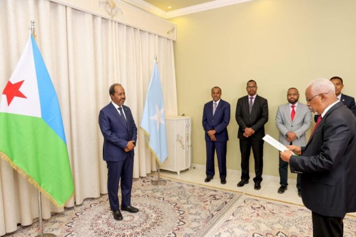 Madaxweynaha Jamhuuriyadda Federaalka Soomaaliya Mudane Xasan Sheekh Maxamuud ayaa warqadaha aqoonsiga danjirenimo ka guddoomay safiirrada cusub ee dalalka, Jabuuti, Kanada iyo Kuubba ee loo soo magacaabay Soomaaliya.