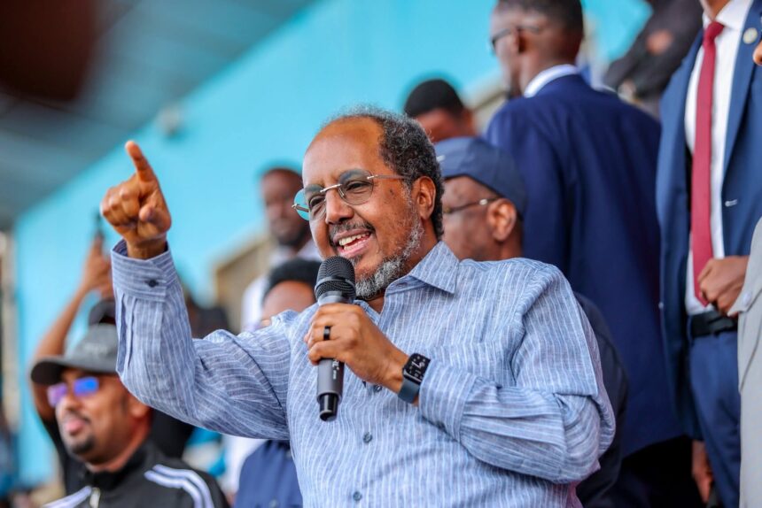 Madaxweynaha Jamhuuriyadda Federaalka Soomaaliya Mudane Xasan Sheekh Maxamuud oo kaga qeybgalay Tuulada Ciyaaraha ee Stadium Muqdisho, ciyaarta kama danbeysta ah ee Koobka Degmooyinka Gobalka Banaadir ayaa tilmaamay in isu-soobaxa kumannaanka kun ee daawanayey ciyaarta ay muujinayso nabadda iyo xasilloonida amni ee caasimadda,