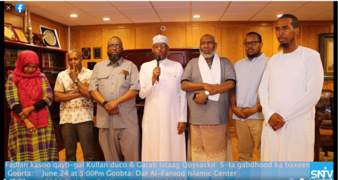 Qaar kamid ah culumada Soomaaliyeed ayaa qabtay kulan hordhac ah oo lagu gudbinaayeen farriimmo ku socda jaaliyadda Soomaaliyeed ee gobolka Minnesota ,kaas oo ku saabsanaa taageero iyo duco.