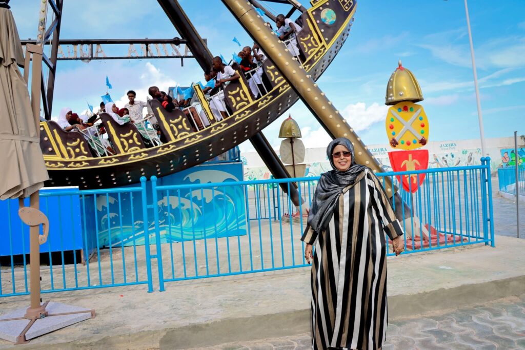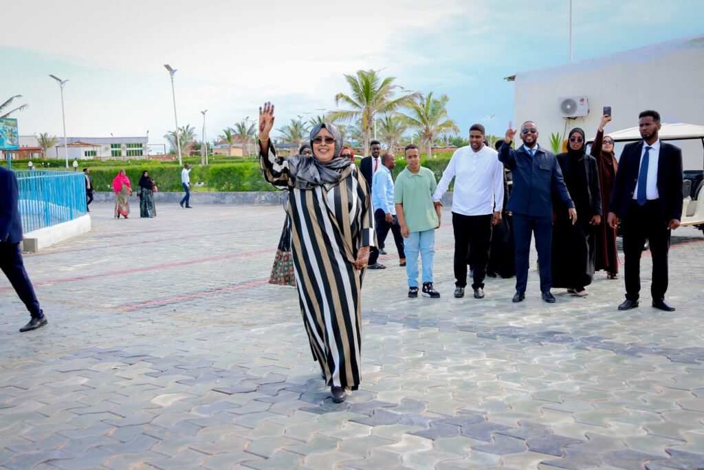 Marwada Madaxweynaha Jamhuuriyadda Federaalka Soomaaliya, Sahro Cumar Xasan ayaa maanta booqasho ku tagtay deegaanka Jaziira, halkaas oo ay qado ugu sameysay carruur agoon ah oo ay iyadu gacanta ku hayso.