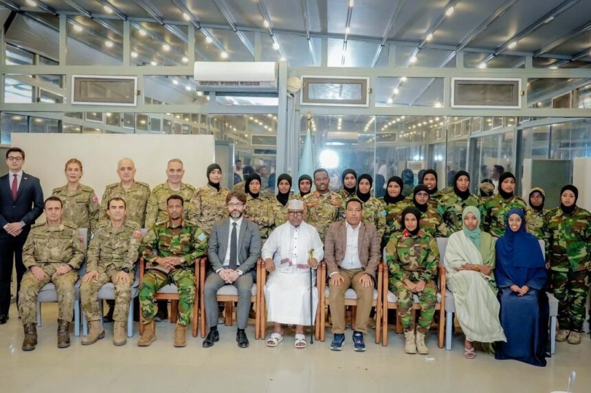 Muqdisho(Wargeyska Dalka):- Wasiirka Gaashaandhigga XFS, Mudane Axmed Macallin Fiqi, oo ay wehliyaan Taliyaha Ciidanka Xoogga Dalka Soomaaliyeed, S/Guuto Ibraahim Maxamed Maxamuud, Taliyaha Ciidanka Dhulka, S/Guuto Sahal Cabdullaahi Cumar, iyo Safiirka Dowladda Turkiga ee Soomaaliya, ayaa ka qayb-galay Munaasabad lagu xusayay Maalinta Caalamiga ah ee Haweenka, isla markaana lagu dhiirrigelinayay Gabdhaha ka tirsan Ciidanka Xoogga Dalka Soomaaliyeed.