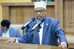 Guddoomiyaha Golaha Aqalka sare Senator Cabdi Xaashi Cabdullaahi oo uu weheliyo Guddoomiye ku-xigeenka labaad Senator Cabdullaahi Cali Xirsi Timacadde, ayaa maanta guddoomiyey kalfadhiga 7-aad, kulabkiisa 14-aad, kaas oo agendihiisu ahaa Akhrinta saddexaad ee Hindise-Sharciyeedka Hannaanka Lacag-bixinta Qaranka iyo Dhegeysiga Warbixinta Guddoomiyaha hay’adda maareynta musiibooyinka Qaranka ee xaaladaha abaaraha dalka.