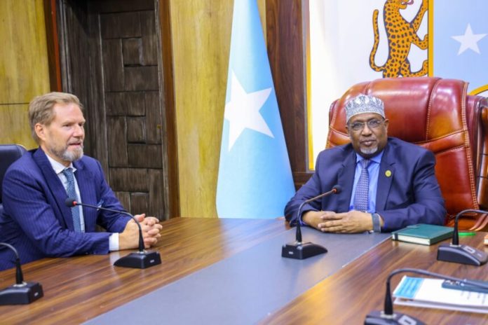 Guddoomiyaha Golaha Shacabka Baarlamaanka Jamhuuriyadda Federaalka Soomaaliya Mudane Sheekh Aadan Maxamed Nuur (Madoobe) ayaa maanta xafiiskiisa ku qaabilay Safiirka dalka Sweden Ambassador Joachim Waern.
