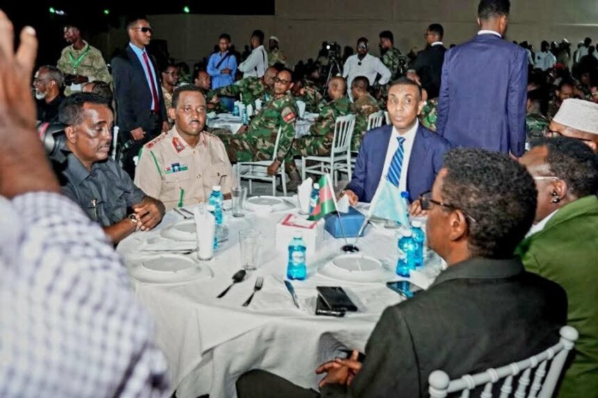 Munaasabadda casho sharaf ah oo lagu weyneynayo sanad-guurada 66-aad ee kasoo wareegtay aas-aaskii Ciidanka Xoogga Dalka ayaa caawa ka socota magaalada Muqdisho ee caasimadda Dalka. Ra’iisul Wasaaraha Xukuumadda Federaalka Soomaaliya, Mudane Xamza Cabdi Barre, oo ay wehliyaan masuuliyiin ka tirsan dowladda, Taliyaha Ciidanka Xoogga Dalka Soomaaliyeed, Gen. Ibraahim Maxamed Maxamuud, iyo qaar ka mid ah taliyeyaasha ciidammada qalabka sida, guddoomiyeyaasha maxkamadaha ciidammada, saraakiil ciidan iyo marti sharaf kale, ayaa ka qeyb galay munaasabad casho sharaf ah oo lagu maamuusayay sanadguurada 66-aad ee ka soo wareegtay aasaaska Ciidanka Xoogga Dalka Soomaaliyeed. Munaasabadda ayaa lagu bogaadiyey doorka ciidanka xoogga dalka ay ku leeyihiin difaaca qaranka, ilaalinta amniga iyo la dagaallanka cadowga, iyadoo madaxda ka hadashay ay adkeeyeen muhiimadda ay leedahay sii xoojinta awoodda iyo tayada ciidanka. Taliyaha Ciidanka Xoogga Dalka Ibraahim Maxamed Maxamuud oo munaasabadda ka hadlay ayaa yiri”Ciidanka Xoogga waxay gaareen guulo waa weyn oo ka dhan ah Khawaarijta sanadkii lasoo dhaafay”.Sidoo kale, Taliyaha ayaa aad ugu dheeraaday Shuhaddada Agoonta Ciimada Xoogga Dalka iyo Muhiimadda uu Talisku siiyay.