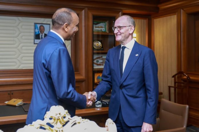 Ra’iisul wasaaraha xukuumadda jamhuuriyadda federaalka Soomaaliya mudane Xamsa Cabdi Barre ayaa xafiiskiisa ku qaabilay danjiraha dowladda UK u fadhiya Soomaaliya Michael Nithavrianakis, waxaana kulankooda ay ka wada hadleen sii xoojinta xiriirka iyo iskaashiga ka dhaxeeya labada dal.