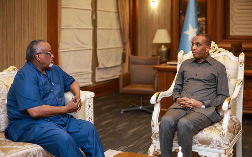 Ra’iisul Wasaaraha XFS, Mudane Xamse Cabdi Barre ayaa xafiiskiisa ku qaabilay Ergayga Gaarka ah ee Madaxweynaha Jamhuuriyadda dhowaan u magacaabay xasillinta iyo Ilaalinta Arrimaha Rayidka ee goobaha dagaallada Mudane Maxamed Cabdi Waare.