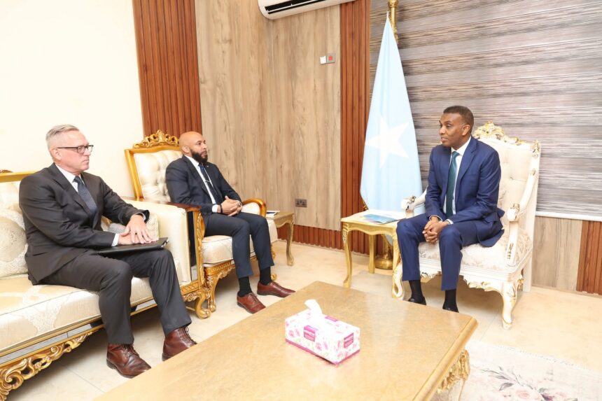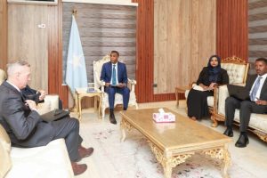 Muqdisho(Wargeyska Dalka):-Ra’iisul Wasaaraha Xukuumadda Jamhuuriyadda Federaalka Soomaaliya, Mudane Xamsa Cabdi Barre, ayaa maanta kulan la qaatay Sii-hayaha Safiirka Dowladda Maraykanka u qaabilsan Soomaaliya, Danjire Justin Davis, waxa ayna ka wada-hadleen xoojinta xiriirka labo-geesoodka ah ee ka dhexeeya Soomaaliya iyo Maraykanka.
