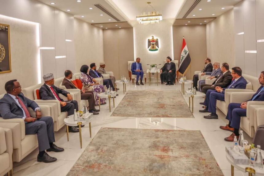 Baqdaad:-Ra’iisul Wasaaraha Xukuumadda Jamhuuriyadda Federaalka ee Soomaaliya, Mudane Xamsa Cabdi Barre, ayaa la kulmay Madaxa Dhadhaqaaqa Al-Xikma ee dalka Ciraaq, Sheekh Cammaar Al-Xakiim.