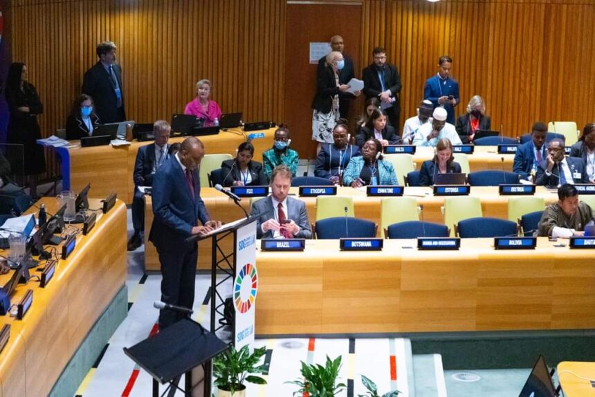 New York, 18 September, 2023 – Ra’isul Wasaaraha Xukuumadda Federaalka Soomaaliya, Xamsa Cabdi Barre oo ka qaybgalaya kalfadhiga 78-aad ee Golaha Guud ee QM oo ka socda magaalada New York, ayaa khudbad uu ka jeediyey kulan lagu gorfeynayey Hiigsiga Yoolasha Horumarka Waara wuxuu kaga warramay isbeddelada amni, dhaqaale iyo siyaasadeed ee dalku ku tillaabsanayo.