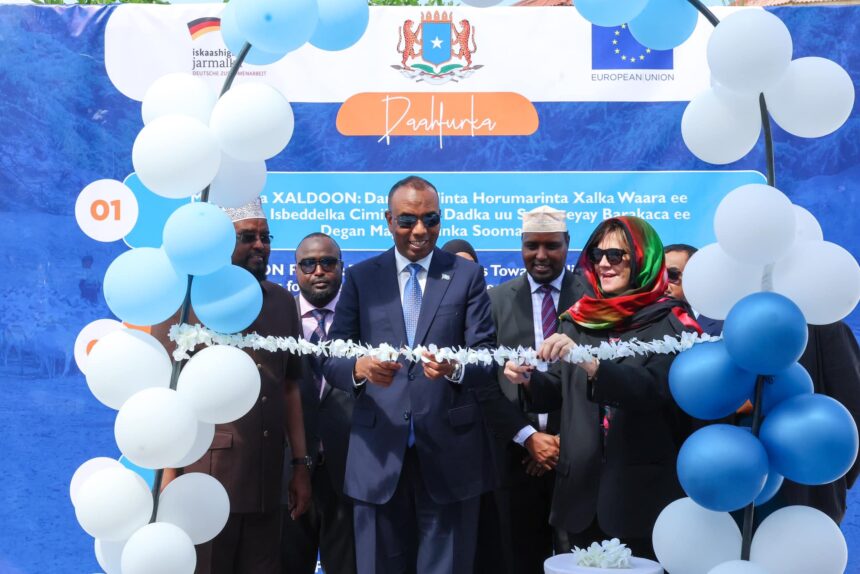 Kismaayo:- Ra’iisul Wasaaraha Xukuumadda Federaalka Soomaaliya Mudane Xamsa Cabdi Barre, ayaa magaalada Kismaayo ku daah furay saddex mashruuc oo la xiriira xalka-waara iyo yareynta saboolnimada oo laga hirgelinayo deegaannada Jubaland iyo Koonfur Galbeed.