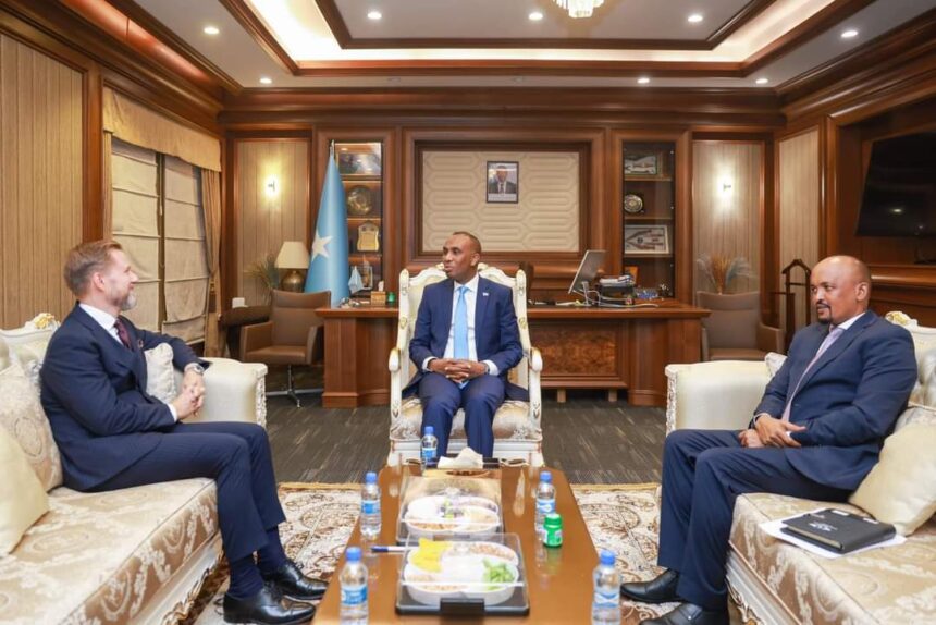Ra’iisul Wasaaraha Xukuumadda Jamhuuriyadda Federaalka Soomaaliya Mudane Xamsa Cabdi Barre, ayaa xafiiskiisa ku qaabilay Danjiraha Dowladda Sweden u qaabilsan Soomaaliya, Ambassador Joachim Waern oo ay ka wada hadleen xiriirka, iskaashiga iyo taageerada ay Sweden siiso Soomaaliya.