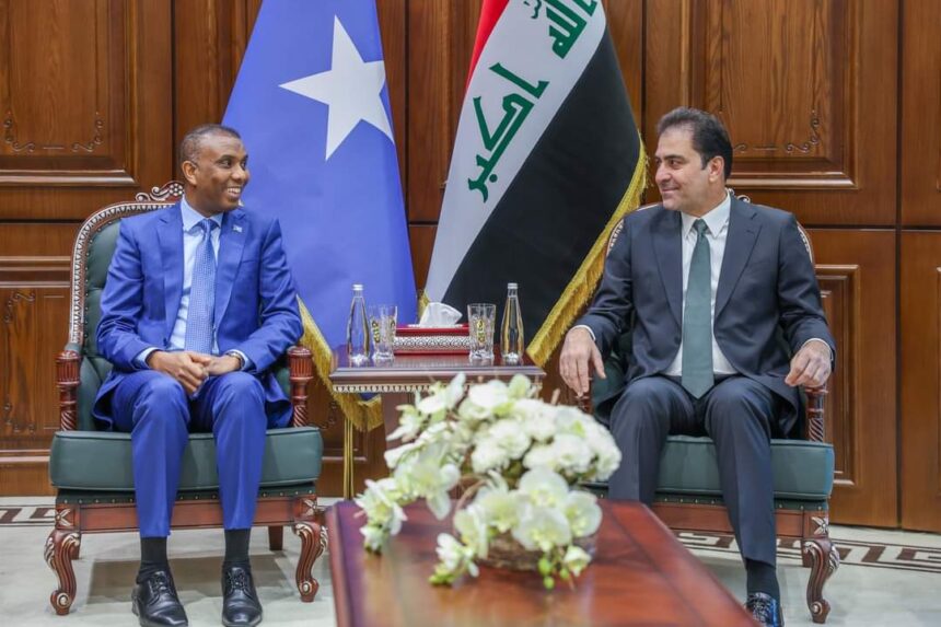 Ra’iisul Wasaaraha iyo guddoomiyaha ayaa si guud uga wada hadlay xoojinta cilaaqaadka u dhaxeeya labada waddan iyo sidii ay Soomaaliya iyo Ciraaq ay u cusbooneysiin lahaayeen iskaashiga dhinacyada kala duwan ee ka dhaxeyn jiray labada dowladood iyo shacab.