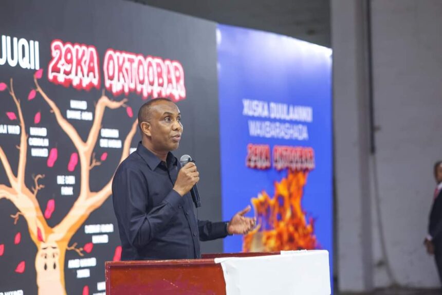 Ra’iisul Wasaare Xamsa Cabdi Barre oo ka hadlay madal lagu xusuusanayey, looguna ducaynayey shuhadadii naftooda ku waayey weerarkii 29-kii Oktoobar, ayaa ku ammaanay guud ahaan qeybaha bulshada Soomaaliyeed sida ay ugu baraarugsan yihiin dhagarta cadowga baneystay daadadin dhiiggooda.