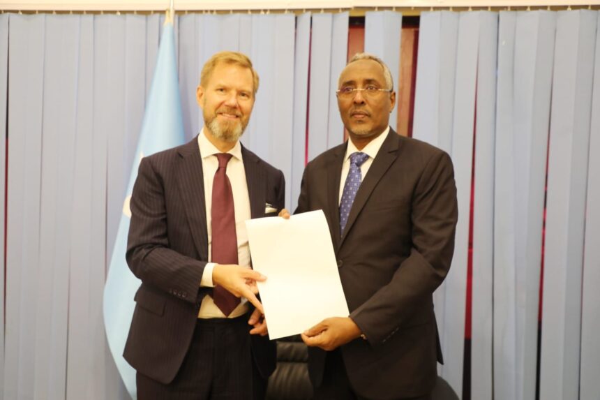 Wasiirka Wasaaradda Arrimaha dibedda Soomaaliya, Abshir Cumar Jaamac Huruuse ayaa warqadaha aqoonsiga Danjirenimo kaga guddoomay Safiirka cusub ee dowladda Sweden u fadhiyi doona dalkeenna Amb. Joachim waern oo baddelaya danjirahoodii hore ee dalkeenna u joogay.