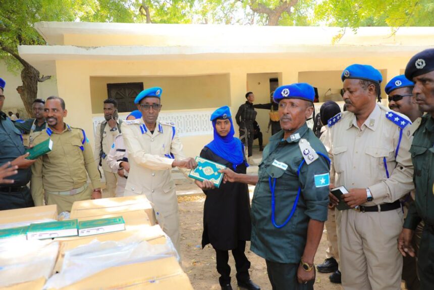 Taliye ku xiggeenka ciidanka Booliska Soomaaliyeed Jeneral Sakiya Xuseen iyo hoggaanka Anshaxa iyo wacyi-gelinta Booliska ayaa maanta Kutubo Qur’aan ah ku wareejiyey ciidanka Birmadka Booliska iyo sidoo kale Ciidanka Daraawiishta, waxaana goob joog ahaa taliyaha ciidanka Birmadka Booliska Kornel Suleymaan Maxamed Axmed Dulmi-diid.