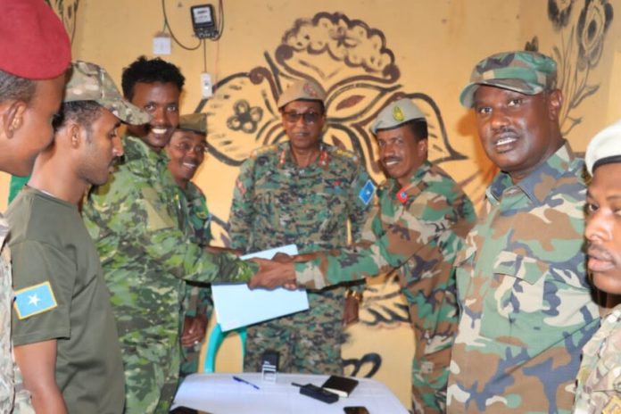 Taliye ku xigeenka ciidanka dhulka Jeneral Cabdullaahi Aaden (Cirro) ayaa xilka u kala wareejiyey taliyihii hore ee ciidamada guutada 27-aad ee Abuu Dujaana Gaashaanle Nuurdiin Xuseen Macalin iyo Taliyaha cusub ee guutada 27-aad ee Abuu Dujaana Gaashaanle Maxamed Nuur Maxamed Cabdi oo dhawaan uu taliska xoogga dalku u soo magacaabay guutadaan.