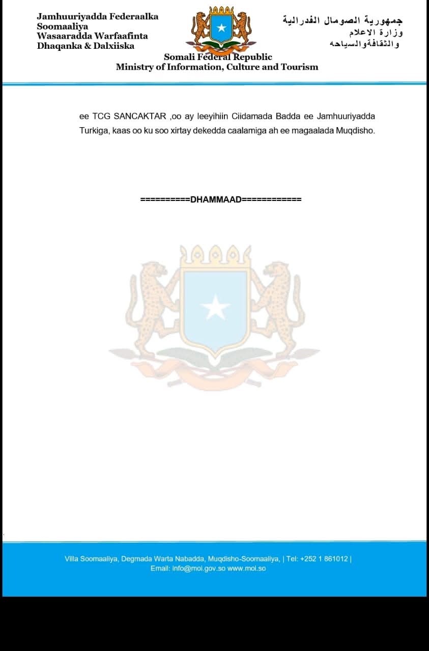 43- Taliyaha Ciidanka Xoogga Dalka Soomaaliyeed, Sareeye Guuto Ibraahim Maxamed Maxamuud, ayaa kormeer rasmi ah ku tagay markabka dagaalka ee TCG SANCAKTAR ,oo ay leeyihiin Ciidamada Badda ee Jamhuuriyadda Turkiga, kaas oo ku soo xirtay dekedda caalamiga ah ee magaalada Muqdisho.