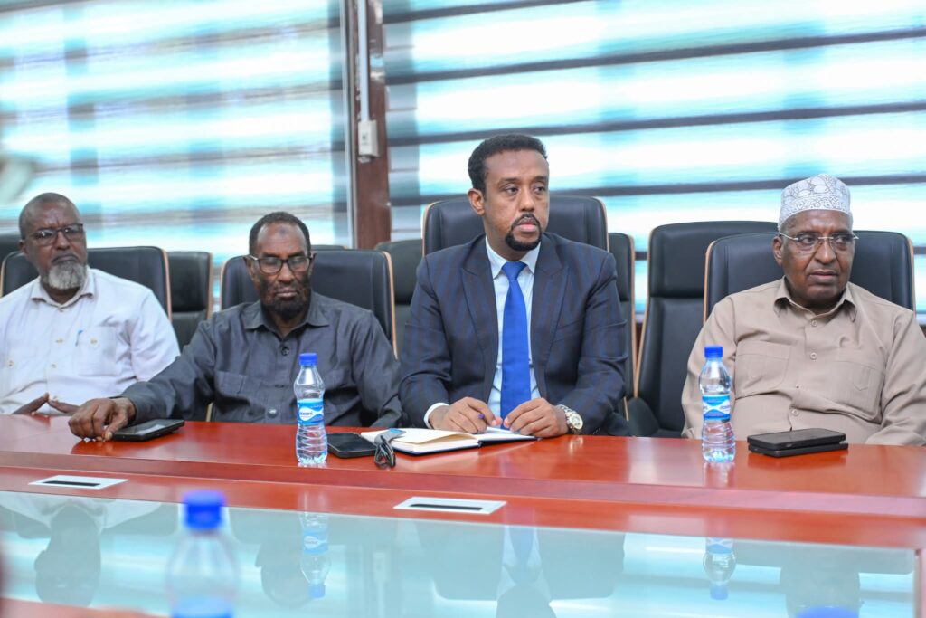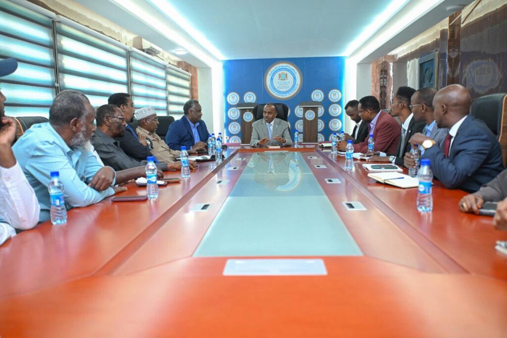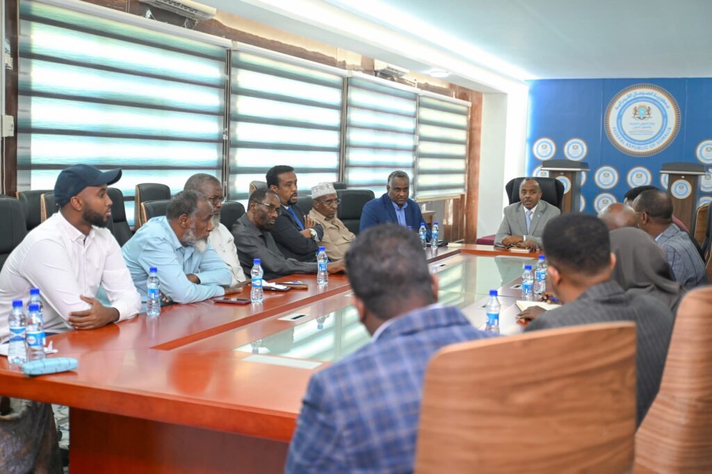 Wasiir-Dowlaha Arrimaha Dibadda ee Jamhuuriyadda Federaalka Soomaaliya, Mudane Cali Cumar, ayaa maanta kulan muhiim ah la yeeshay hoggaamiyeyaasha ganacsiga Soomaaliyeed, kuwaas oo ay ka mid ahaayeen ururrada bangiyada, Rugta Ganacsiga Soomaaliyeed, Ururka Isgaarsiinta, iyo haweenka ku jira ganacsiga.