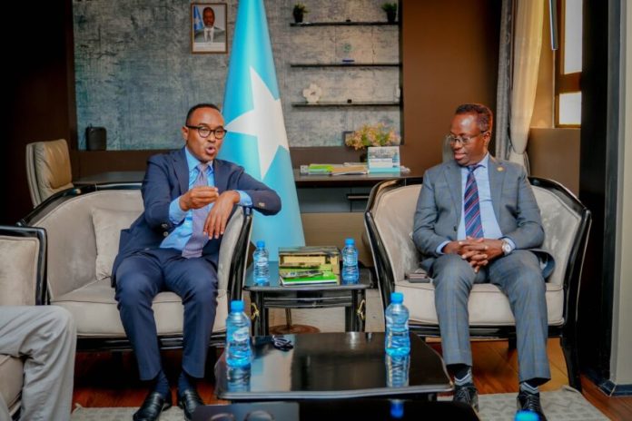 Muqdisho-(Wargeyska Dalka)-Wasiirka Wasaaradda Beeraha iyo Waraabka ee Dowladda Federaalka Soomaaliya, Maxamed Cabdi Xayir (Maareeye) iyo Guddoomiyaha Hay’adda Maareynta Musiibooyinka Qaranka (SoDMA), Maxamuud Macalin Cabdulle, ayaa maanta yeeshay kulan lagu dardargelinayo Barnaamijka Kaydinta Biyaha ee Jowhar (Jowhar Offstream Storage Programme (JOSP).
