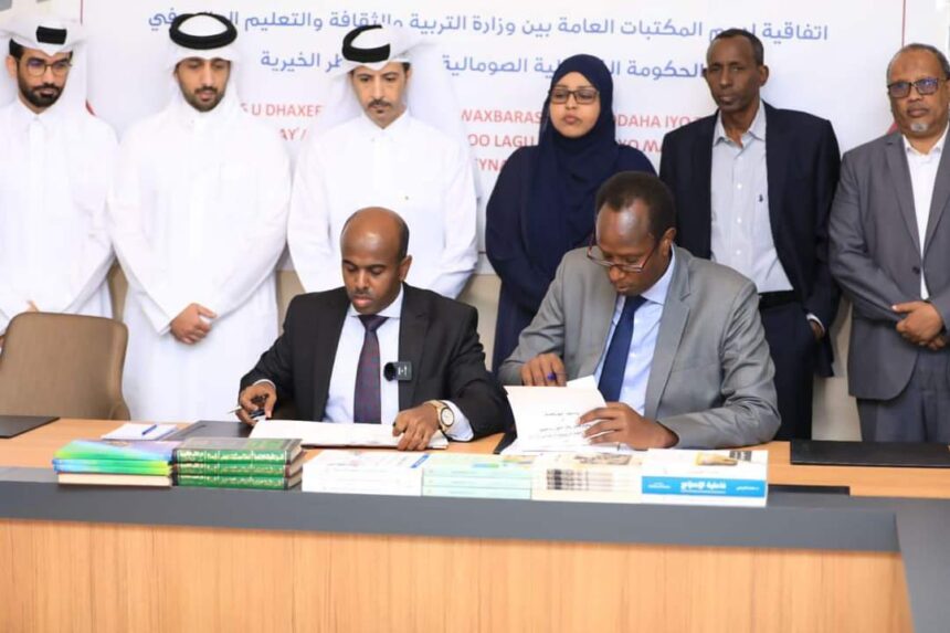 Hashiiska ayaa dhanka Wasaaradda Waxbarashada waxaa u saxiixay Agaasimaha Akadeemiyada Qaranka halka dhanka kale uu u saxiixay Agaasimaha Xafiiska Somaliya ee Qatar charity.