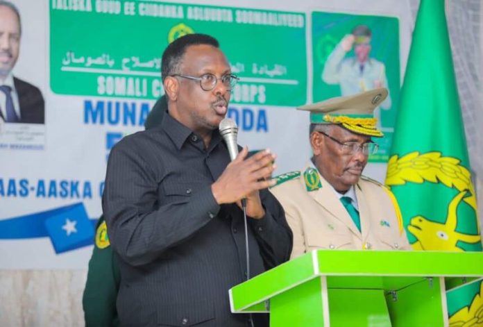 Wasiirka wasaaradda Cadaaladda iyo Arrimaha Dastuurka Xukuumadda JFS Mudane Xasan Macalin Maxamuud ayaa Maanta ka qayb galay Munaasabada sanad-guurada 54aad ee Aas-aaska Ciidanka Asluubta Soomaaliyeed oo lagu qabtay taliska Ciidanka Asluubta.