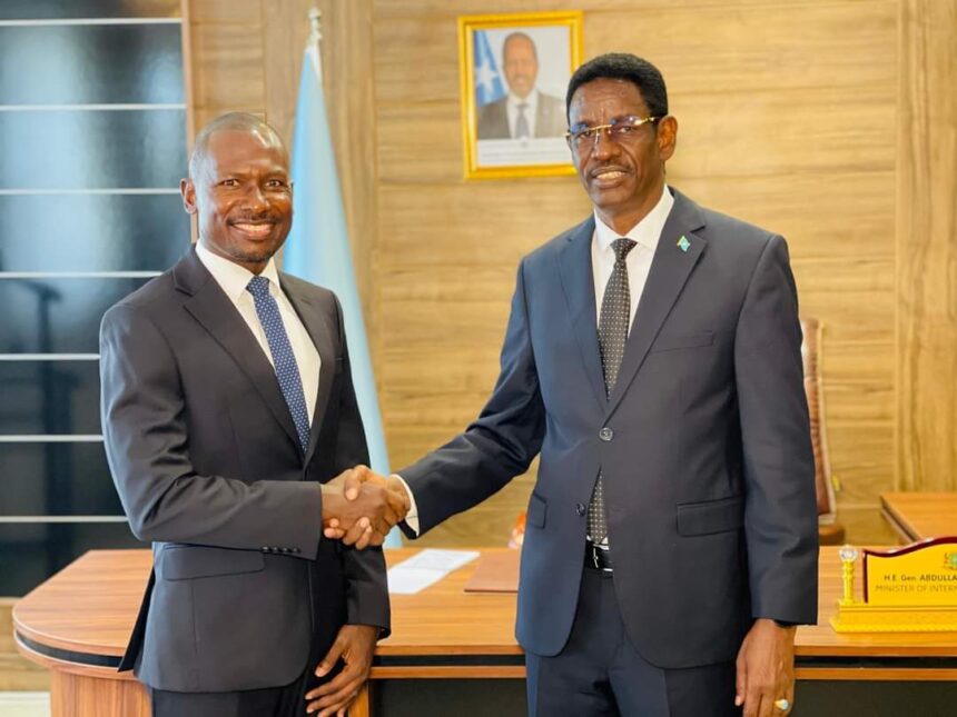 Wasiirka Amniga Gudaha Xukuumadda Federaalka Soomaaliya Mudane AAbdullahi Sheikh Ismail – Fartaag ayaa maanta xafiiskiisa ku qaabilay madaxa howlgalka IOM ee Soomaaliya Frantz Celestin, kaas oo ay yeesheen wadahadal miro dhal leh.