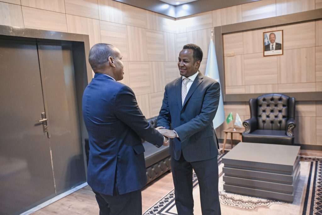Wasiirka Arrimaha Dibadda iyo Iskaashiga Caalamiga, Mudane Cabdisalaan Cabdi Cali, ayaa xafiiskiisa ku qaabilay Danjire Muuse Jaamac Cali, Ergeyga Gaarka ah ee IGAD u qaabilsan Koonfurta Suudaan. Kulankaas ayay uga wada hadleen xoojinta nabadda iyo iskaashiga amniga ee gobolka.