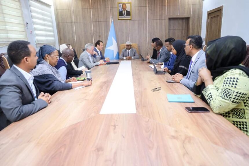 Wasiirka Arrimaha Gudaha, Federaalka iyo Dib u heshiisiinta mudane Ahmed Moallim Fiqi ayaa maanta xafiiskiisa kula kulmay mas’uuliyiin ka tirsan xarunta ECES (European Centre for Electoral Support).