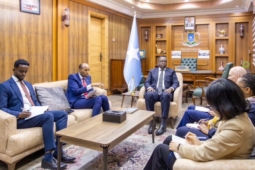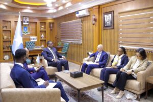 Wasiirka Wasaaradda Caddaaladda iyo Arrimaha Dastuurka Xukuumadda JFS Mudane Xasan Macalin Maxamuud ayaa maanta xafiiskiisa ku qaabilay Wakiilka Xoghayaha Guud ee Qaramada Midoobay u qaabilsan Soomaaliya, Mudane James Swan.