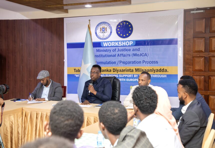 Muqdisho-(Wargeyska Dalka)-Wasiirka Caddaaladda iyo Arrimaha Dastuurka ee Xukuumadda Federaalka Soomaaliya, Mudane Xasan Macalin Maxamuud ayaa maanta si rasmi ah u furay tababar ku saabsan Habka Diyaarinta Miisaaniyadda oo loo qabtay howlwadeennada Wasaaradda, kaas oo qeyb ka ah Mashruuca Maareynta Ammaanka, Caddaaladda iyo Isla-Xisaabtanka (SJGAP).