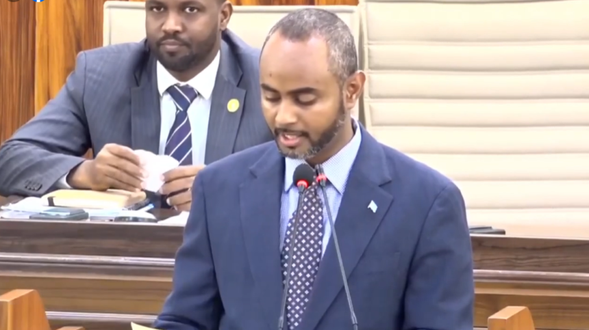 Wasiirka Gaashandhigga XFS, Cabdiqaadir Maxamed Nuur Jaamac, oo Xildhibaannada Golaha Shacabka u akhriyay muhiimadda ay Soomaaliya u leedahay in ay ku biirto ciidanka heeganka Bariga Afrika, isagoo ka codsaday in ay meel mariyaan heshiishkan.