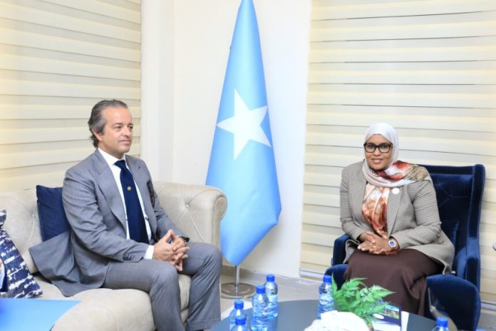 Wasiirka Gaadiidka iyo Duulista Hawada XFS. Marwo Fardowsa Osmaan Cigaal ayaa Xafiiska Wasaaradda ku qaabishay Safiirka Dowladda Talyaaniga Ee Soomaaliya Ambassador, Pier Mario Dacco’ Coppi.