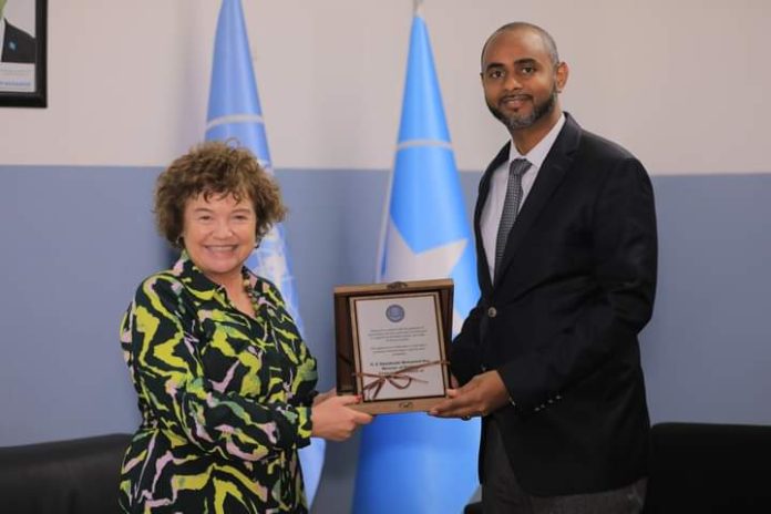 Wasiirka Cabdulqaadir Maxamed Nuur ayaa Marwo Catriona Laing oo xilka kasii dagaysa uga mahad celiyey doorka wanaagsan ee qaramada midoobey ka ciyaareyso geeddi-socodka nabadda ee Soomaaliya.