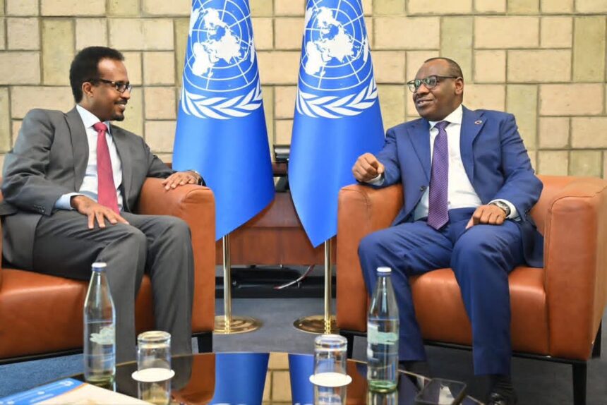 Addis Ababa: Wasiirka Ganacsiga iyo Warshadaha ee Xukuumadda Federaalka Soomaaliya Mudane Jamaal Maxamed Xasan, ayaa magaalada Addis Ababa kula kulmay Mudane Claver Gatete, oo ah Ergeyga Gaarka ah ee Xoghayaha Guud ee Qaramada Midoobay u qaabilsan Afrika, isla markaana ah Madaxa United Nations Economic Commission for Africa.