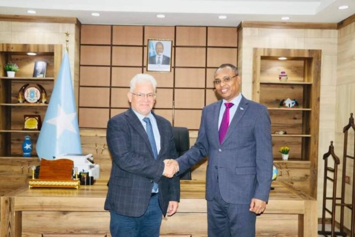 Wasiirka Ganacsiga iyo Warshadaha XFS Xildhibaan Jibril Abdirashid Haji Abdi, ayaa maanta xafiiskiisa ku qaabilay Wakiilka hay’adda UNDP ee Soomaaliya Mr. Lionel Laurens oo ay ka wada-hadleen iskaashiga labada dhinac, horumarinta ganacsiyada gaarka ah, shaqo abuurka iyo guud ahaan kobaca dhaqaalaha ee wadanka.