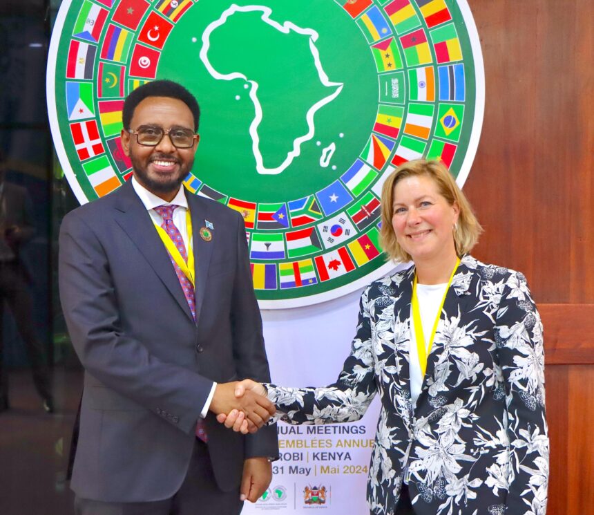 Wasiirka Maaliyadda Xukumadda Federaalka Soomaaliya Mudane Biixi Imaan Cige oo ka qeyb galaya shirka Sanadlaha ah ee Bangiga Horumarinta Afrika ayaa waxa uu halkaas kulamo gaar ah kula yeeshay madax ka socotay Dowladaha UK, Norway iyo Netherlands.