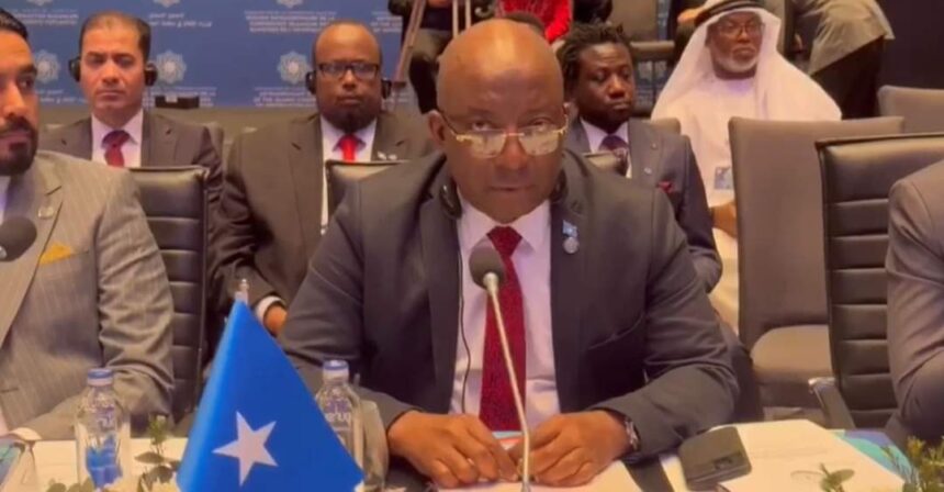 Wasiirka oo khudbad ka jeedinayey shir aan caadi ahayn oo Wasiirrada Warfaafinta ee waddamada Islaamka ay ku yeesheen magaalada Istanbul , loogana hadlayey gabbood-falka ay Israel ku hayso dadka reer Falastiin ee ku dhaqan marinka Gaza, ayaa xusay in Soomaaliya oo dadaal ugu jirta inay dalkeeda amni ku soo dabaasho, ay nasiib darro tahay in Ethiopia oo si sharciga caalamiga ka baxsan heshiis is-afgarad la gashey gobolka Somaliland ee Waqooyiga Soomaaliya. Wasiirka waxaa uu sheegay in go’aanka gurracan ee Ethiopia uu khatar ku yahay gobolka Geeska Afrkika oo dhan iyo caalamka intiisa kale.