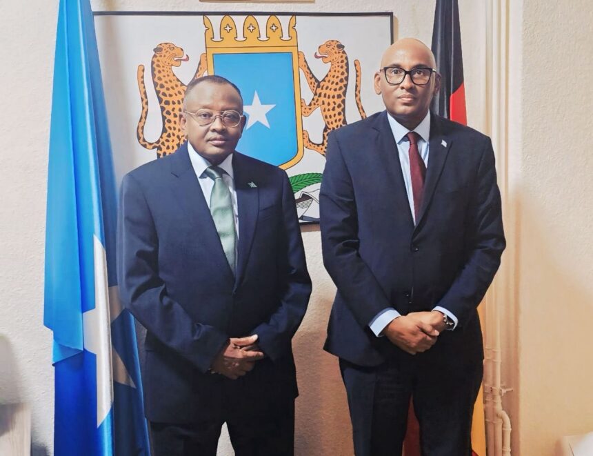 Berlin- Wasiirka Wasaaradda Deegaanka iyo Isbeddelka Cimilada Soomaaliya, Sarreeye Guud Bashiir Maxamed Jaamac oo magaalada Berlin kaga qayb-galaya shirka Cimilada iyo Amniga 2025 ayaa booqasho rasmi ah ku tagay xarunta safaaradda Soomaaliya ee Jarmalka.