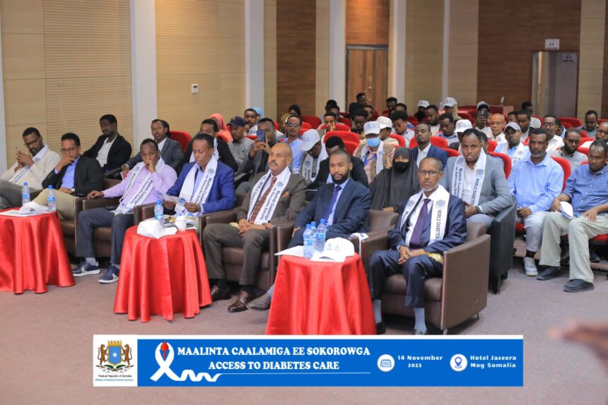 Munaasabadda xuska maalinta caalamiga ah ee cudurka Sonkorowga oo ay qabanqaabisay wasaaradda caafimaadka dowladda FS waxaa ka qaybgalay mas’uuliyiin ka tirsan wasaaradda oo uu ka mid yahay wasiir ku xigeenka wasaaradda caafimaad iyo daryeelka bulshada xukuumadda federaalka Soomaaliya Dr. Maxamed Xasan bullaale, xildhibaano, Dhaqaatiir, hay’ado caalami ah iyo kuwa maxali ah, maamulada Isbitaalada dowliga ah iyo kuwa gaarka loo lee yahay, khuburo caafimaad iyo marti sharaf kale.